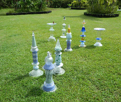 I love any type of Vintage Glass and enjoy creating Totems, Towers and Bird Baths.